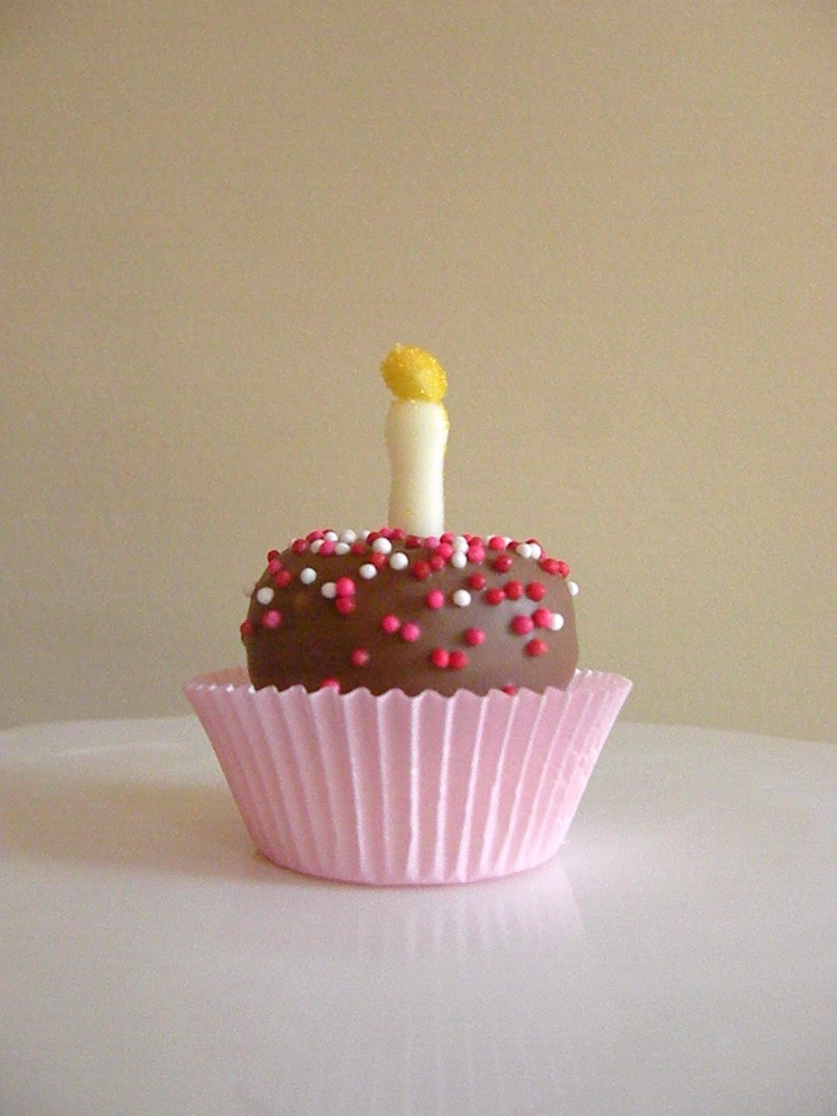 Dip the marshmallow in white chocolate and let it dry, then dip the top in chocolate (or use any color you would like) and add some sprinkles and put a chocolate candle on top!